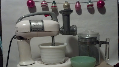First of all, they found this Dormeyer stand mixer with meat grinder. I believe it was made around 1950-1951 and still works wonderfully. My only disappointment was that it only has the smaller of the mixing bowls but it will give me something to search for. They also picked up the shiny brites which i adore. Next up is a older Pyrex Percolator which I am intrigued by as the insides are completely metal. Previously I had only ever found them where the insides were partially glass. The metal insides also must be original as they are marked Pyrex. Has anyone else ever found a similar one? Last for this photo is a small Jadeite bowl.